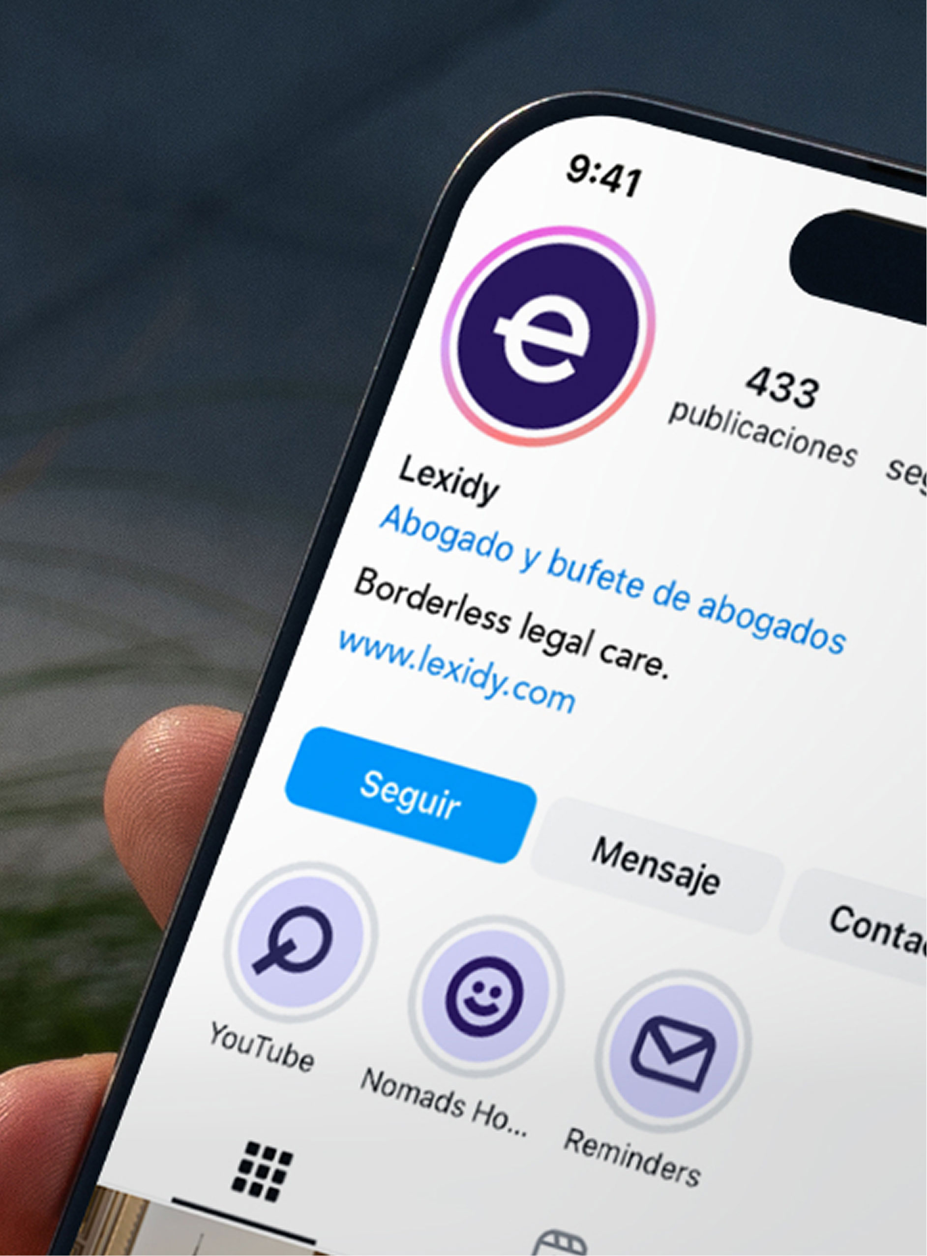 Los códigos visuales trabajados reflejan un soporte legal sólido, avanzado y sin barreras, mientras que los elementos gráficos refuerzan el dinamismo, la fluidez y la calma de un proceso guiado por expertos locales a nivel internacional.