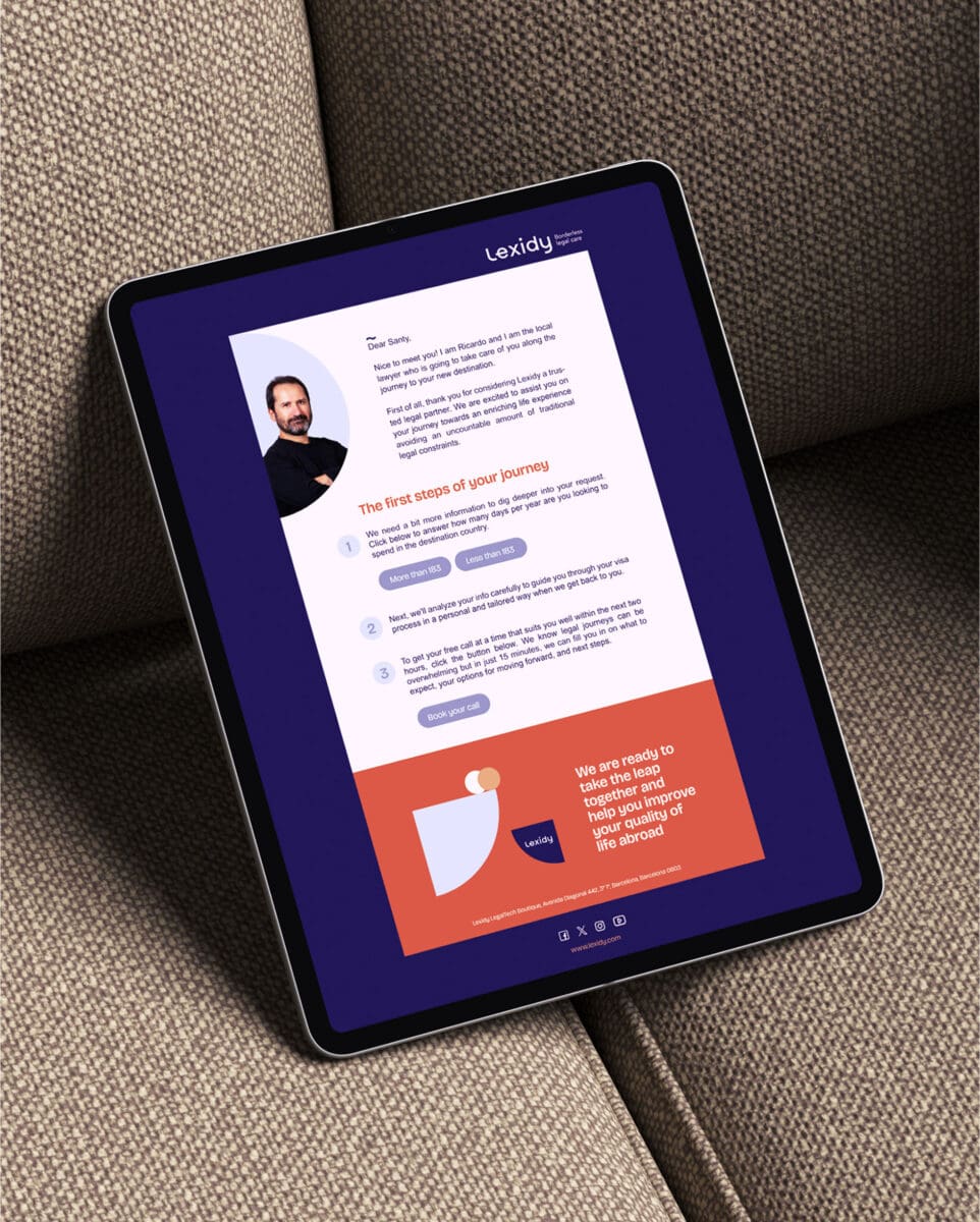 La estrategia de marca definida consigue hacer tangible The Lexidy Way, una manera fluida de hacer las cosas que libera a sus clientes del estrés asociado a los procesos legales internacionales, llevándolos así del caos a la tranquilidad.